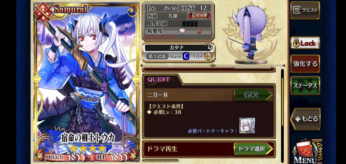 トウカ・ハルアキ編のメインストーリーはこの方のキャラクエ。妹がSRで兄がRだったんですね。